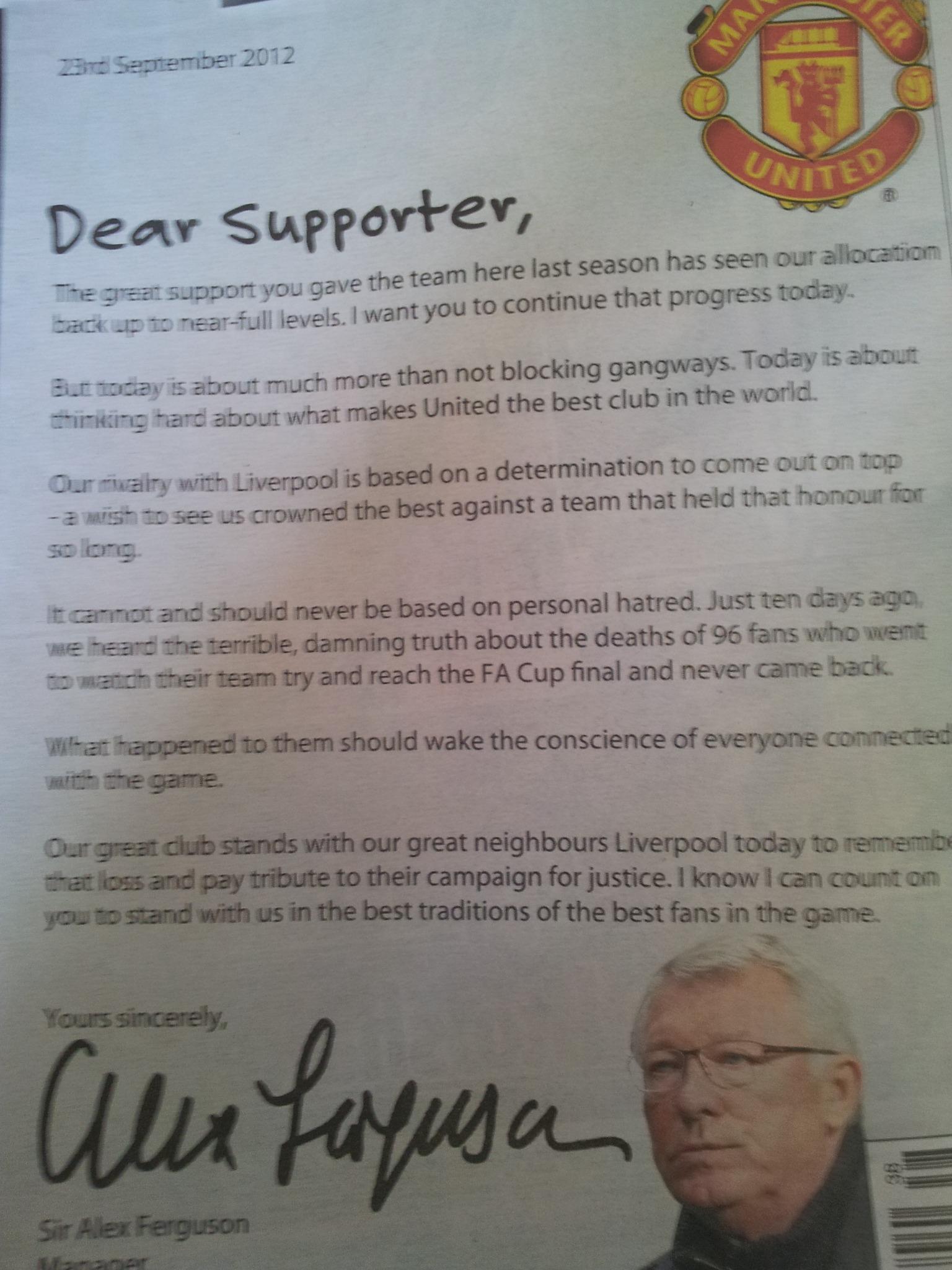 Sir Alex Ferguson asks Man Utd fans to show respect tomorrow for the 96 who died at Hillsborough